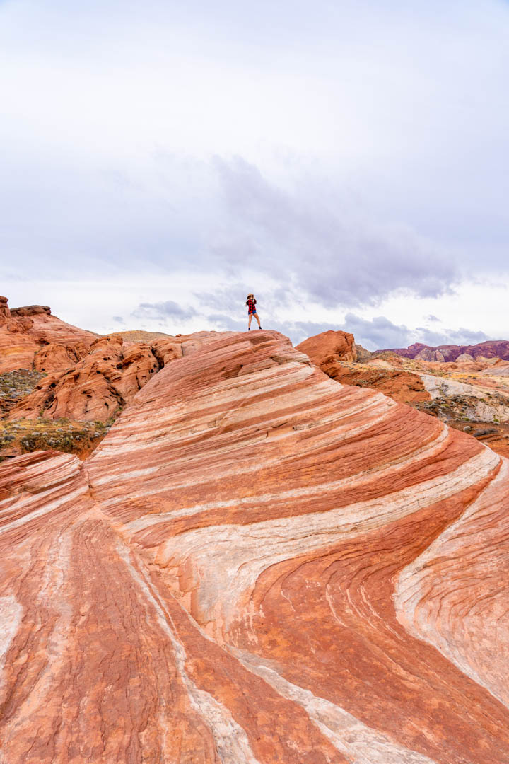 Otro lugar por el que tiene que caminar desde la carretera principal es la Ola de Fuego. La ola de fuego se encuentra a aproximadamente 1,5 millas de ida y vuelta. El paseo es bastante simple y tiene unas vistas increíbles. Seguir ese camino me hizo sentir desconectada y realmente aprecio la belleza de la naturaleza. Una vez que llegamos no había nadie y parecía fenomenal. Es increíble cómo se forman estas areniscas y cómo las olas son tan perfectas. Deberías venir y ver por ti mismo, ¡no te arrepentirás!