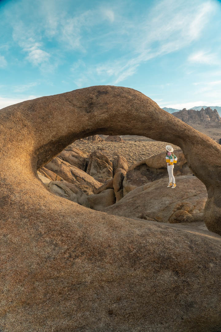 Para llegar al Arco Mobius, tendrás que caminar unos 10 minutos desde la carretera principal hacia un sendero. El arco es una formación increíble, solo debes tener cuidado al subir a las rocas. Como está arriba en una colina, solo mira tus pasos. Hay unas vistas tan bonitas desde el arco y los alrededores. ¡Ve y visitalo!